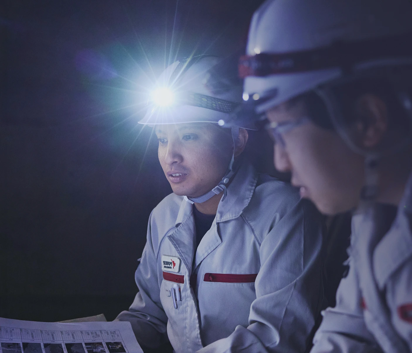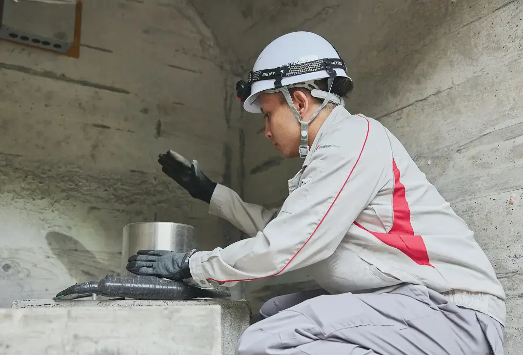 私が担当している業務は、ダムおよび関連設備の保守管理です。保守管理では、五感を活用して設備の異常を早期に発見するための巡視点検や、劣化・損傷箇所を補修する工事などを行います。巡視点検は先輩社員や上司とともに行うことで、設備に関する知識や異常の特徴知ることができ、異常の発見の仕方からその対処方法までを間近で学ぶことができます。設備異常を早期に発見し、その対処を迅速に行うことで、安定した電力供給を支えています。