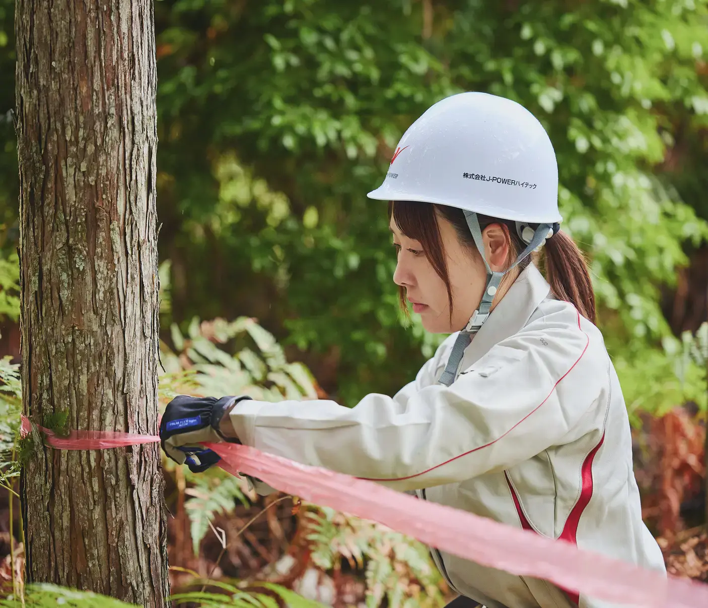 送電線下や鉄塔敷地の状況を確認するため、現地に赴きます。現場を把握することが交渉や資料作成を進めるうえで不可欠です。現場で気づきを得て、正確性と信頼性を高める大切な作業です。